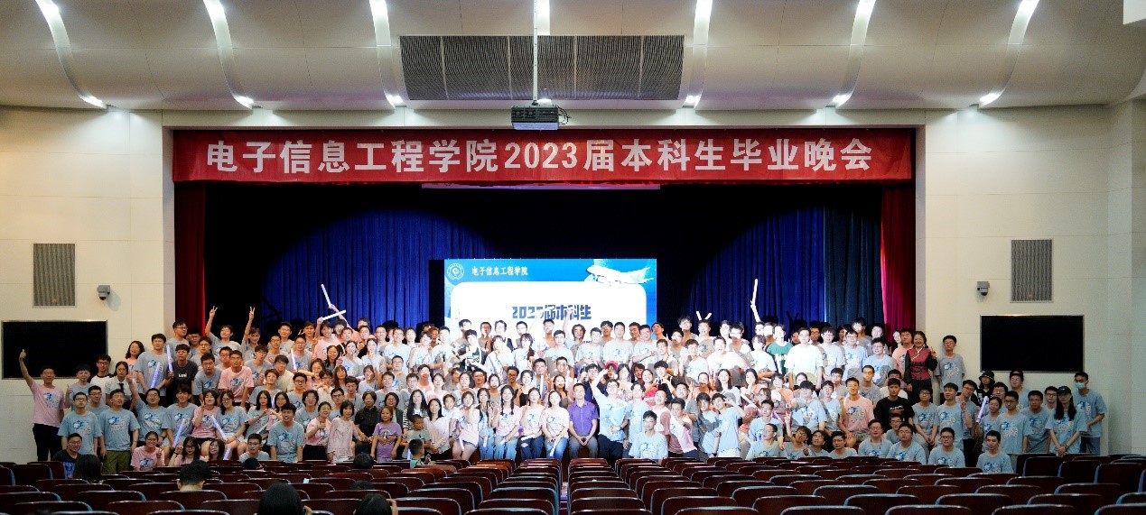 2023年6月9日19:00,电子信息工程学院2023届“E就乐Er”本科生毕业晚会在学术交流厅拉开帷幕。学院领导班子成员、教师代表、本科生班主任、专兼职辅导员出席晚会,与2019级本科生共同告别过往,开启美好新征程。