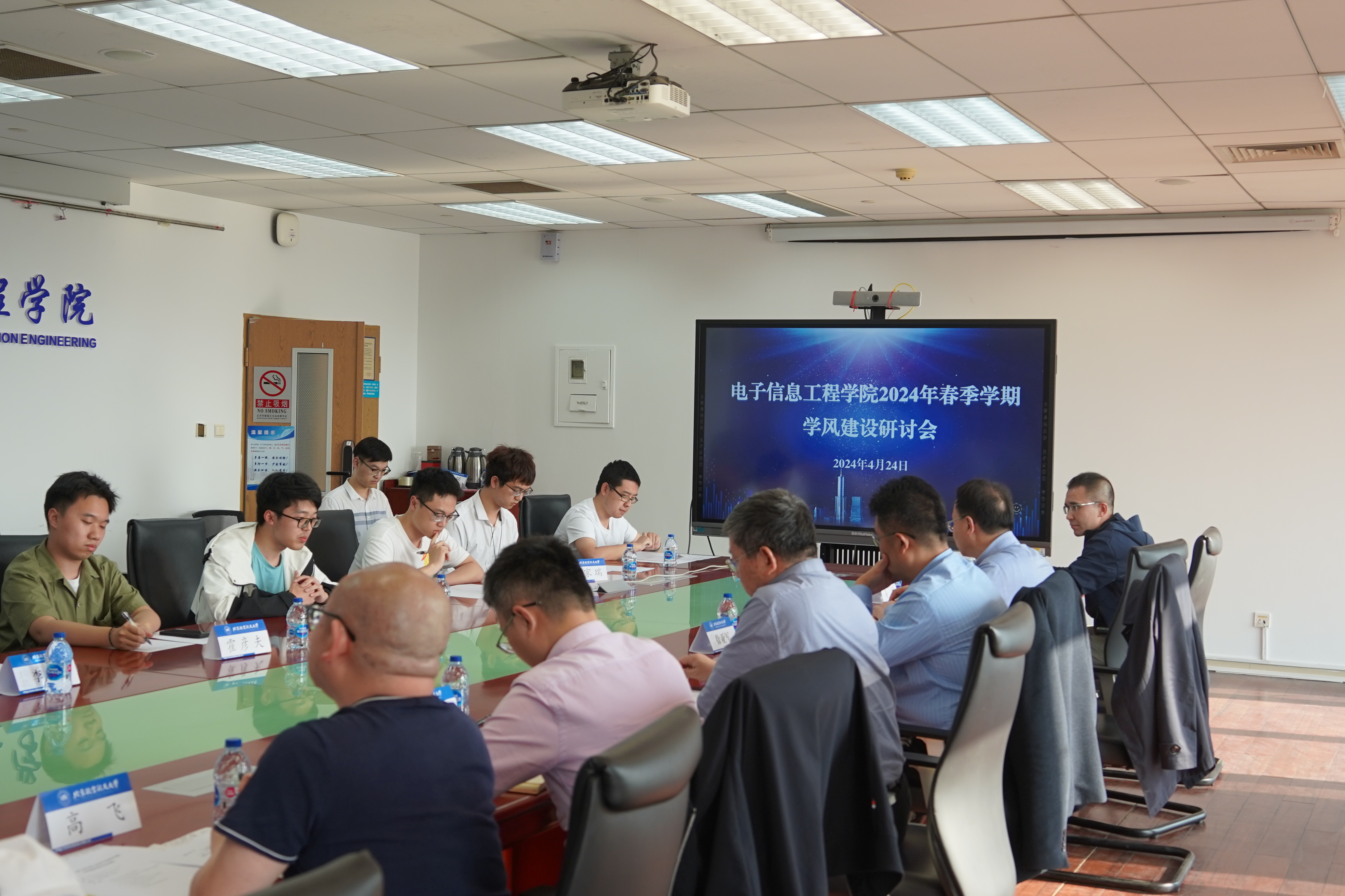 为为贯彻落实学校人才培养大会精神,全面加强学院学风建设,4月24日下午,电子信息工程学院召开学风建设研讨会,围绕构建优良学风长效机制、提升办学质量、汇聚育人合力等问题进行深入探讨。学院领导班子成员,课程教学团队负责人,导师代表,班主任代表,专兼职辅导员,教学秘书,学生代表等30人出席,会议由学院党委副书记姜宇主持。